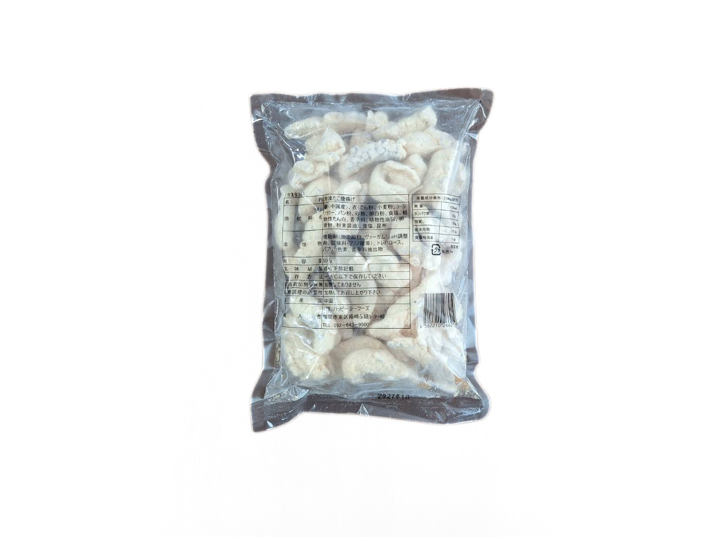 独自の製法で岩蛸のカリッとした衣とプリッとした食感を両立。噛むほどに旨味が広がり、揚げるだけで手軽に調理可能です。500gの使い切りサイズで保存にも便利です。