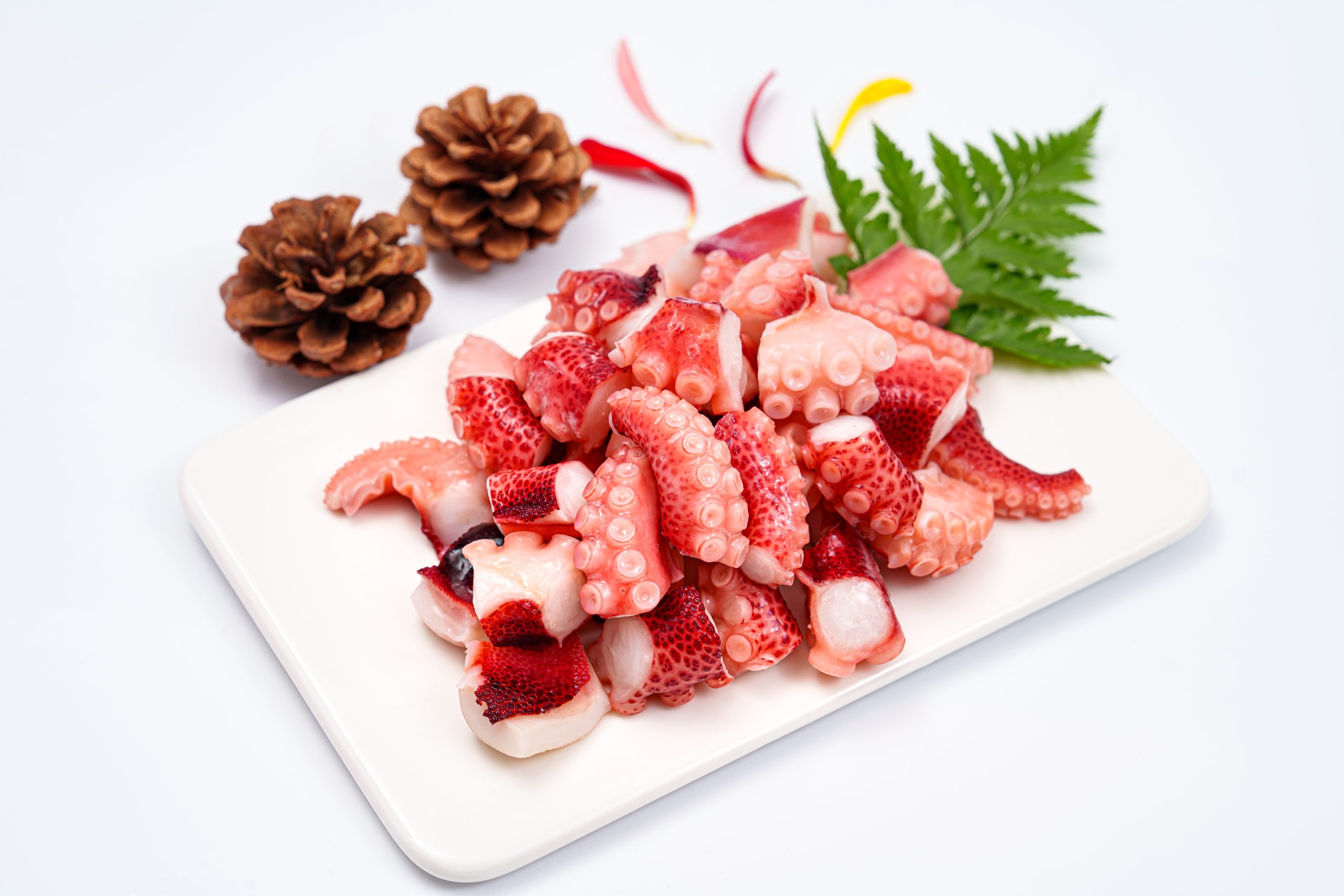 ワンランク上のカットタコ。蛸本来の旨味成分が豊富に含まれております。濃い赤みで噛み応えがあり、噛めば噛むほど旨みが引き立てられます。